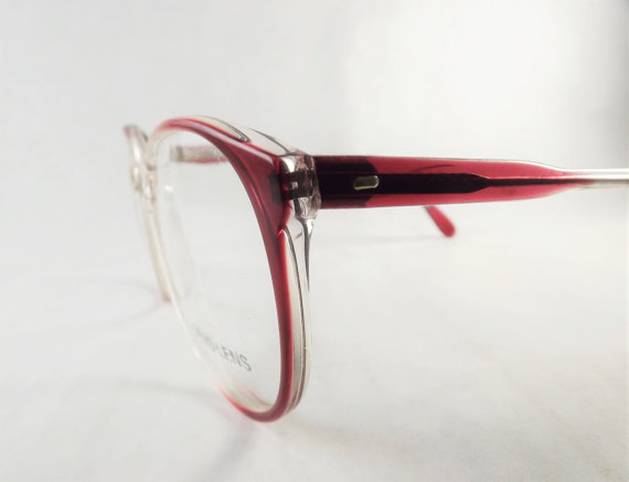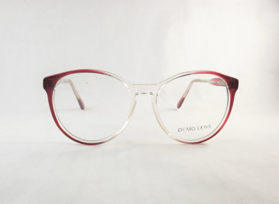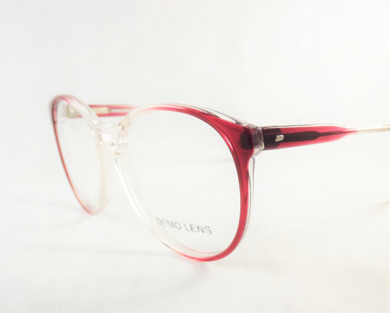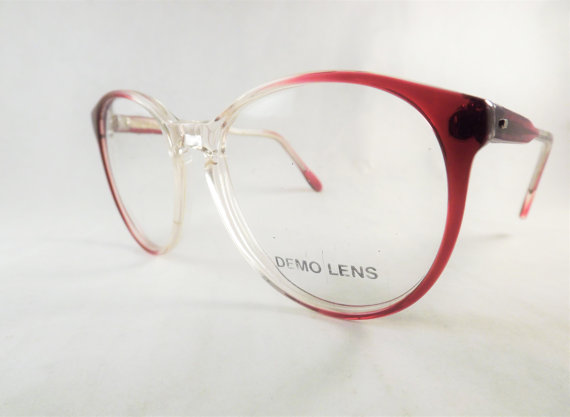 1980's vintage BIG round burgundy wine / cranberry outer rim and clear translucent inner rim vintage eyeglass frames.