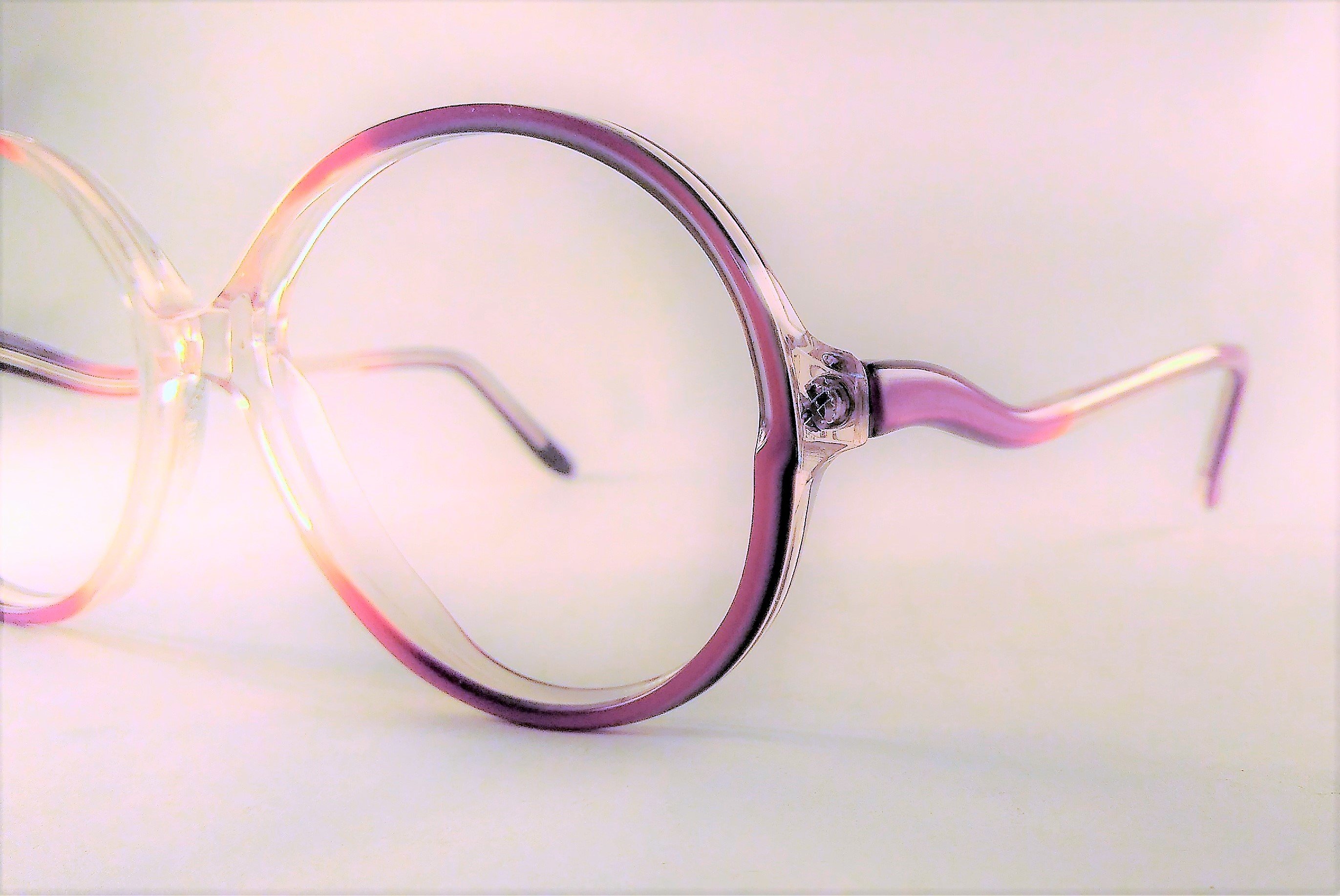 Big Pink Round Eyeglasses, Womens Vintage 1980s Designer Gloria Vanderbilt Glasses