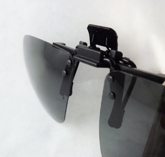 These clip on sunglasses are from the 80's for mens big glasses. Tinted gray lenses. Polarized UV block acrylic lenses.