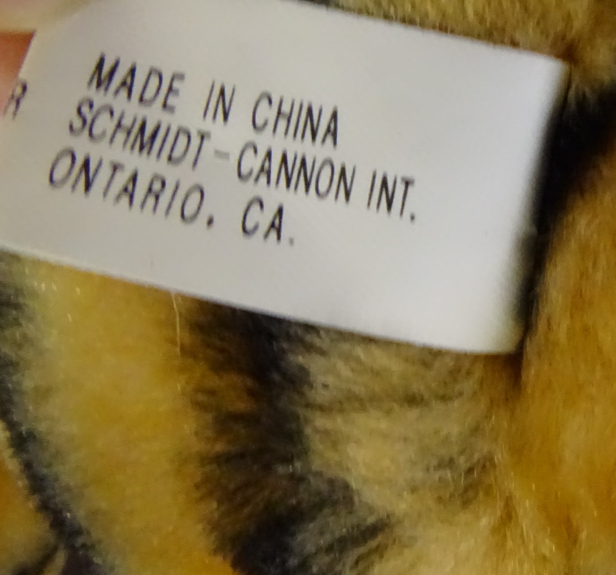 Cute small striped cubby tiger cub in golden orange brown with black stripes and white detailing. Darling collectible Schmidt-Cannon probably from the 1980's